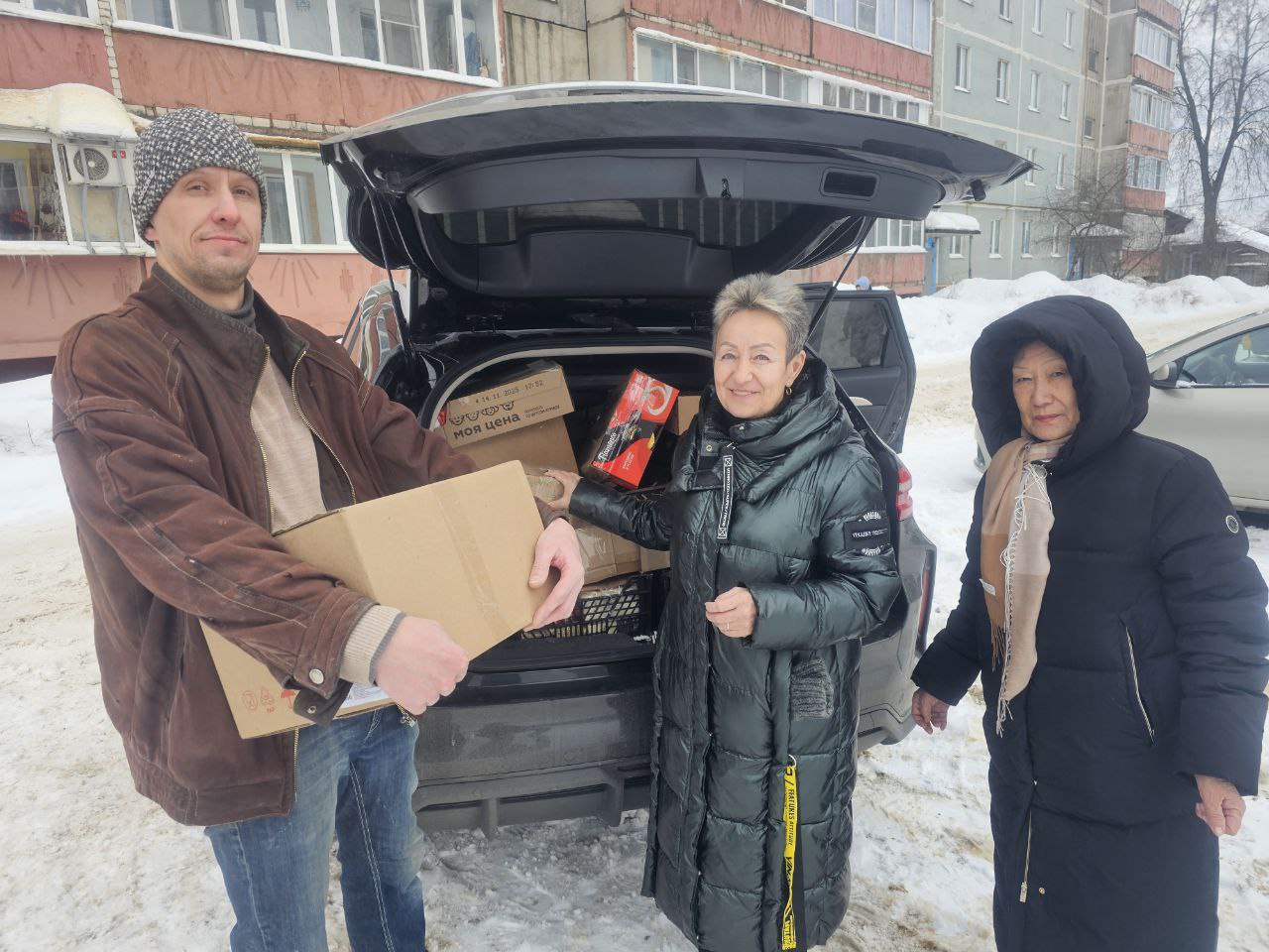 На переднем плане – Наталья Викторовна Майорова и Елена Владимировна Попа, месяц назад за свою волонтерскую деятельность они были награждены медалями Министерства обороны РФ "За помощь и милосердие".